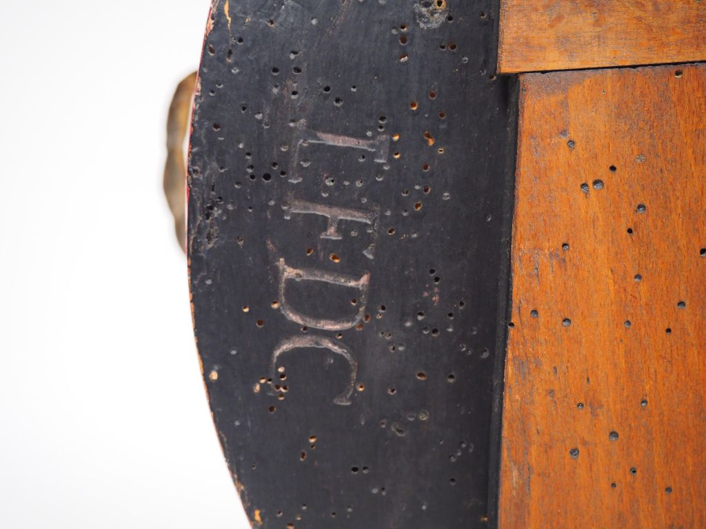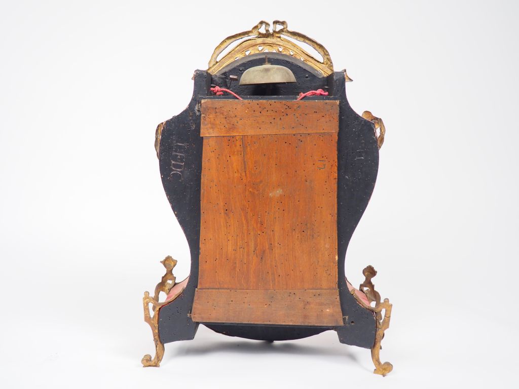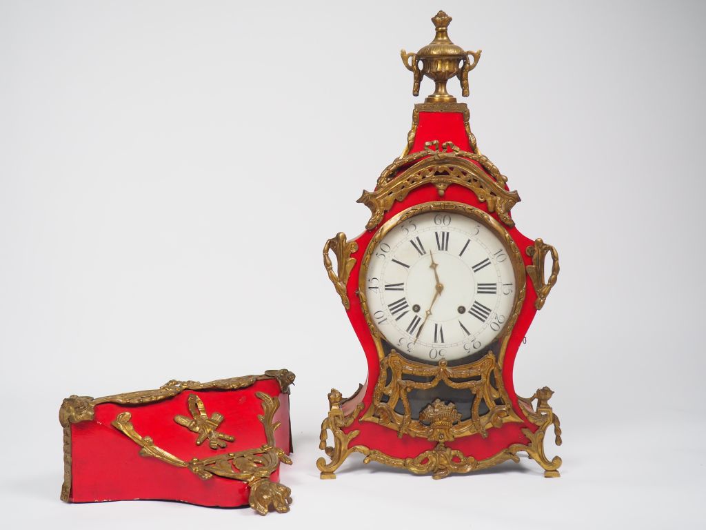Cartel d'applique de style Louis XV en bois laqué rouge et bronze. H. : 115 cm. (relaqué)
