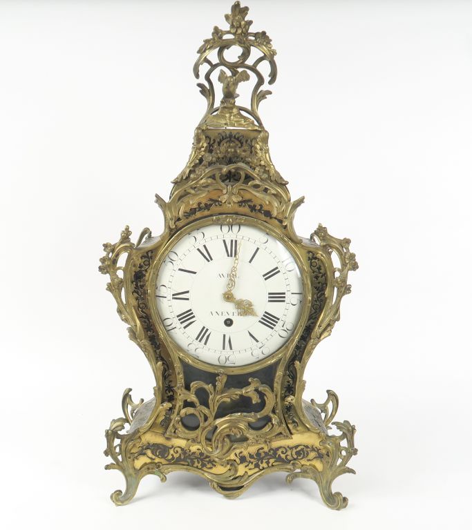Cartel Louis XV en marqueterie Boulle signé Avril à Nevers. Avec son balancier H. 72,5 cm