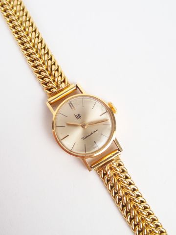 LIP. Montre de dame, boitier et bracelet maille tressée en or jaune. Numérotée 82957. Poids tel: 20,9gr