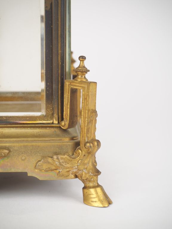 Pendule cage Napoléon III de style Louis XVI en verre et métal doré. Dim. 38 x 18 x 15 cm