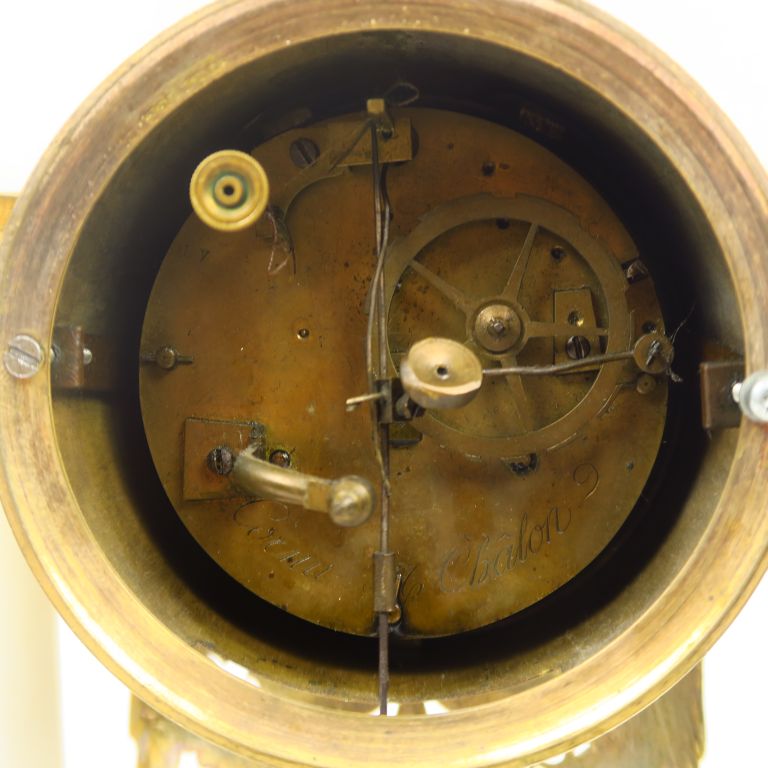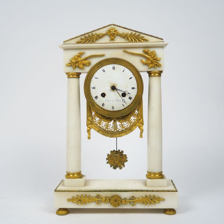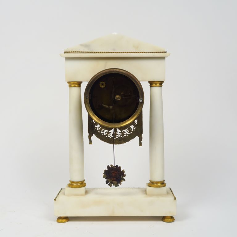 Pendule portique de style Louis XVI en albâtre et bronze, cadran signé Cornu à Chalon H. 38 cm (égrenures)