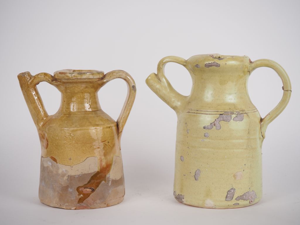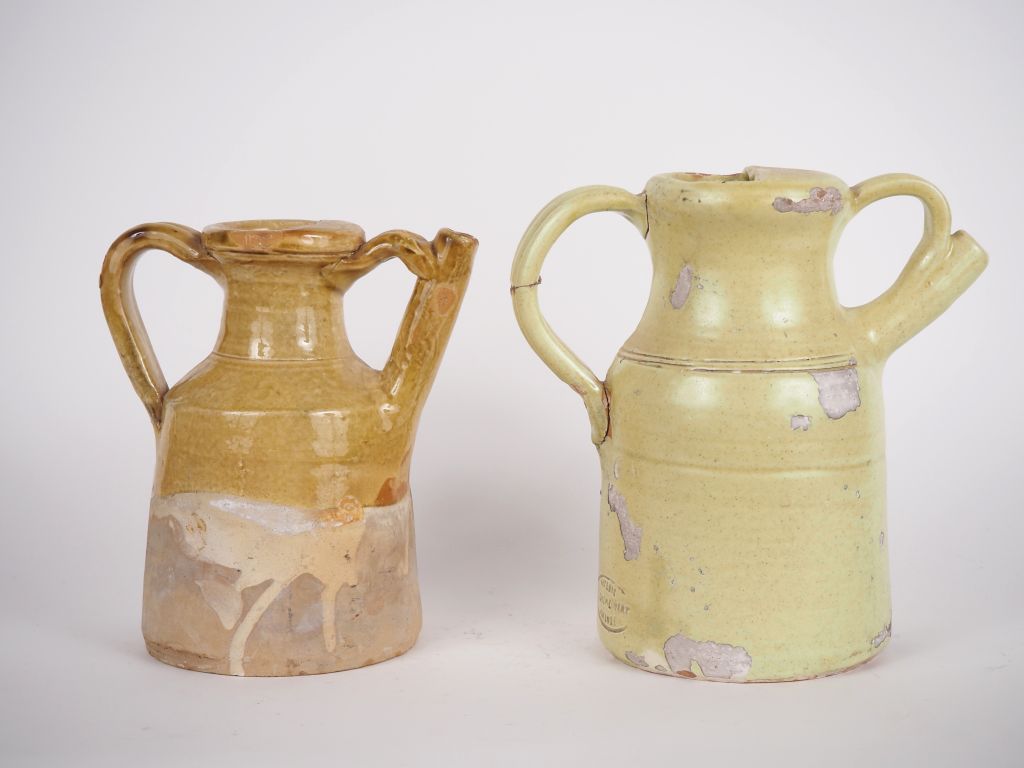 Lot de 2 différentes chevrettes en terre vernissée ocre. (une accidentée) au prix de 40 à 60 € en vente aux enchères par l'hôtel des ventes Primardeco
