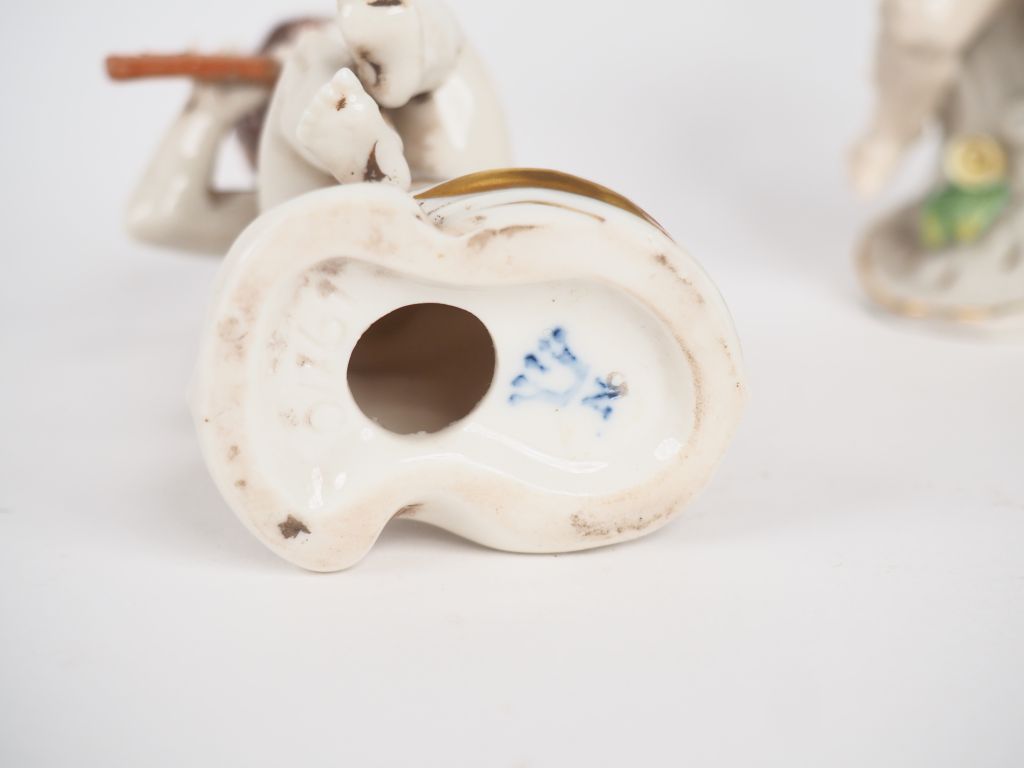 3 sujets en porcelaine polychrome italienne "angelots musiciens". Marqués d'un N couronné sous la base. H. 12 cm.