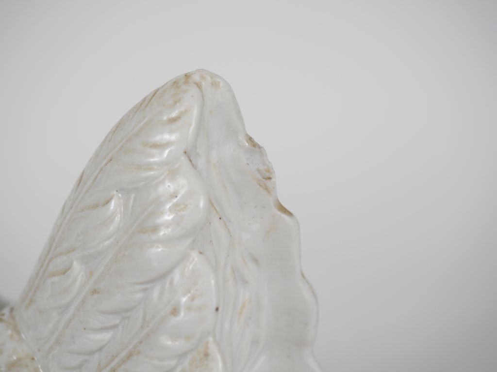 Boite à œufs 1900 en porcelaine polychrome en forme de poule couvant. (petite égrenure aux plumes arrières et à l'intérieur) Dim. 22 x 23 cm