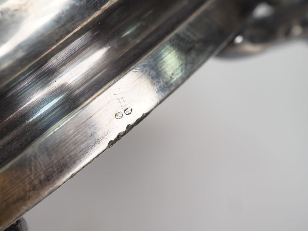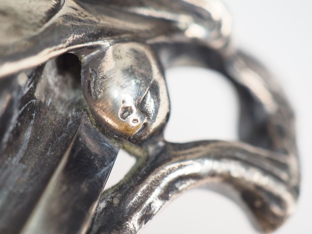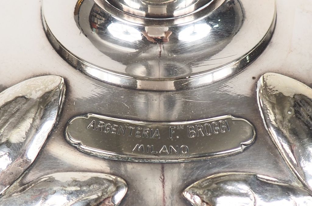 BROGGI à Milan. Pied de lampe Art Nouveau en argent. Signé "Argenteria F. BROGGI, Milano". Poinçonné, poinçon de garantie. Poids tel : 3228 g H. 40,2 cm