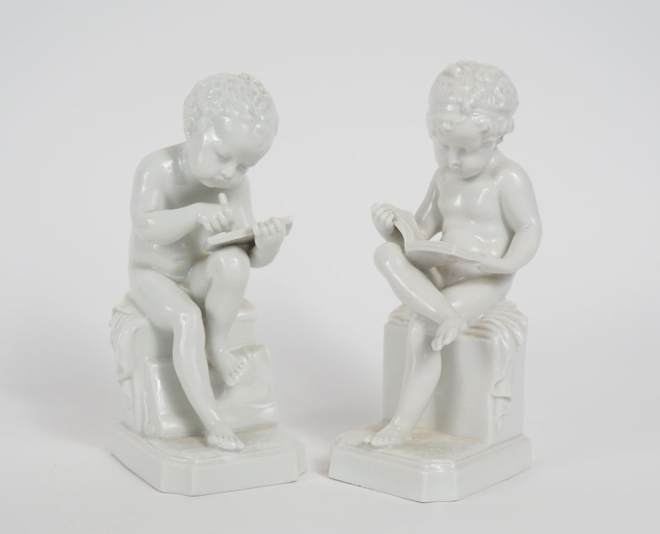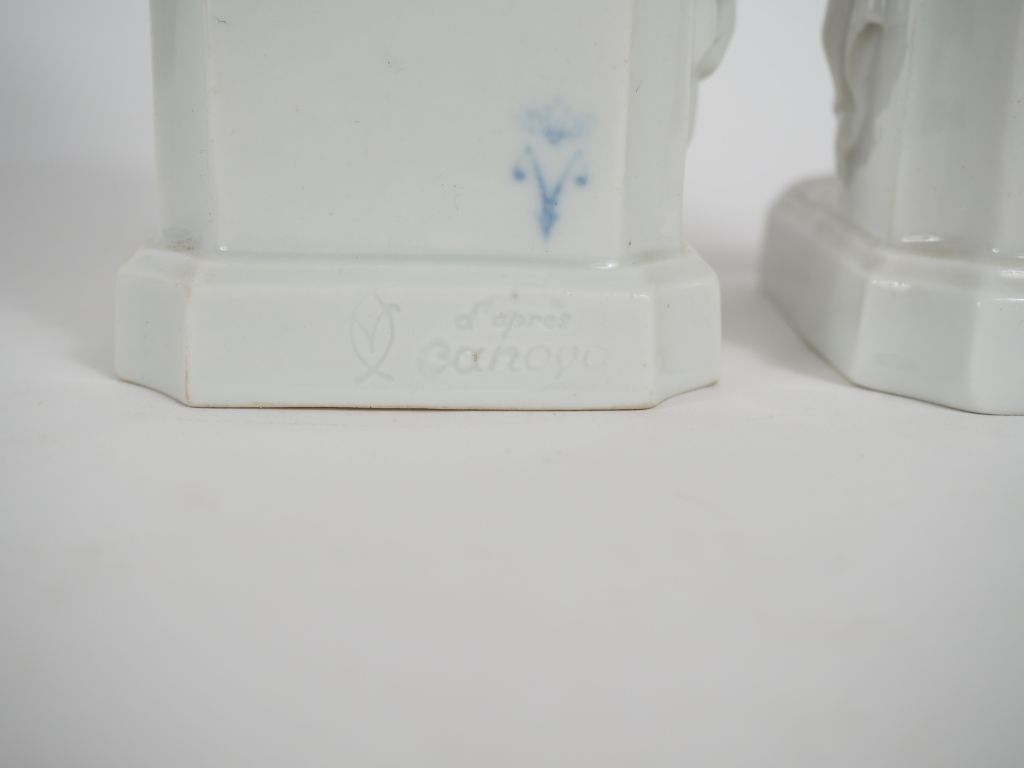 CANOVA. (d'après) Paire de sujets en porcelaine "amour écrivant" et "amour lisant" Signés H. 17,5 cm et 18,5 cm