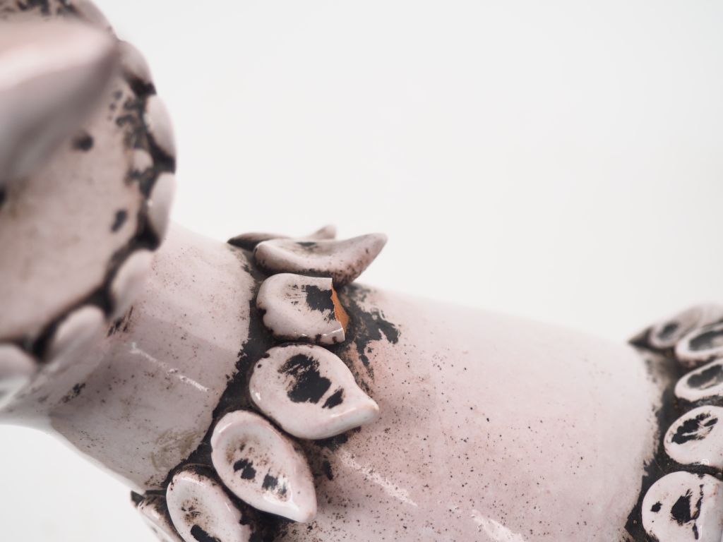 Ecole française XXème. Brûle-parfum figurant un coq. Dim. 28,5 x 45 x 23 cm. (un éclat).