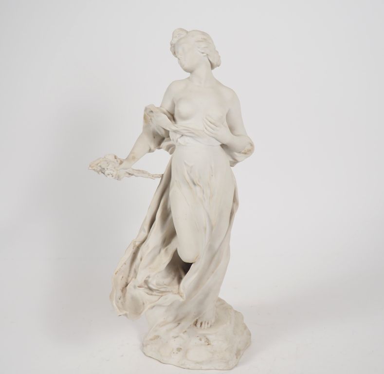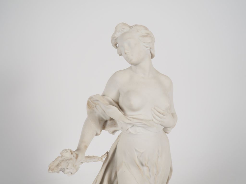 F. CHARPENTIER. Sujet 1900 en biscuit de Sèvres "jeune femme en buste dénudée" H. 45 cm Marqué Sèvres DE 7/03