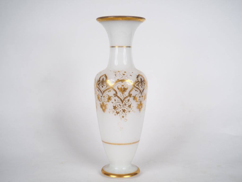 Grand vase XIXème en opaline blanche, à décor de frise de rinceaux feuillagés. H. 35 cm