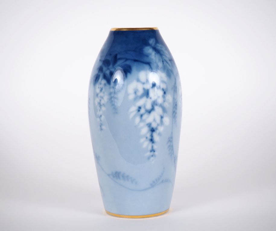 LIMOGES. Vase ovoide en porcelaine à décor en camaieu bleu de glycine. H. 24,5 cm