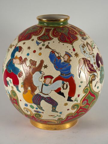 LONGWY. Grand vase boulle modèle Petruchka, signé et numéroté 33/50. H. 41 cm dans sa boite