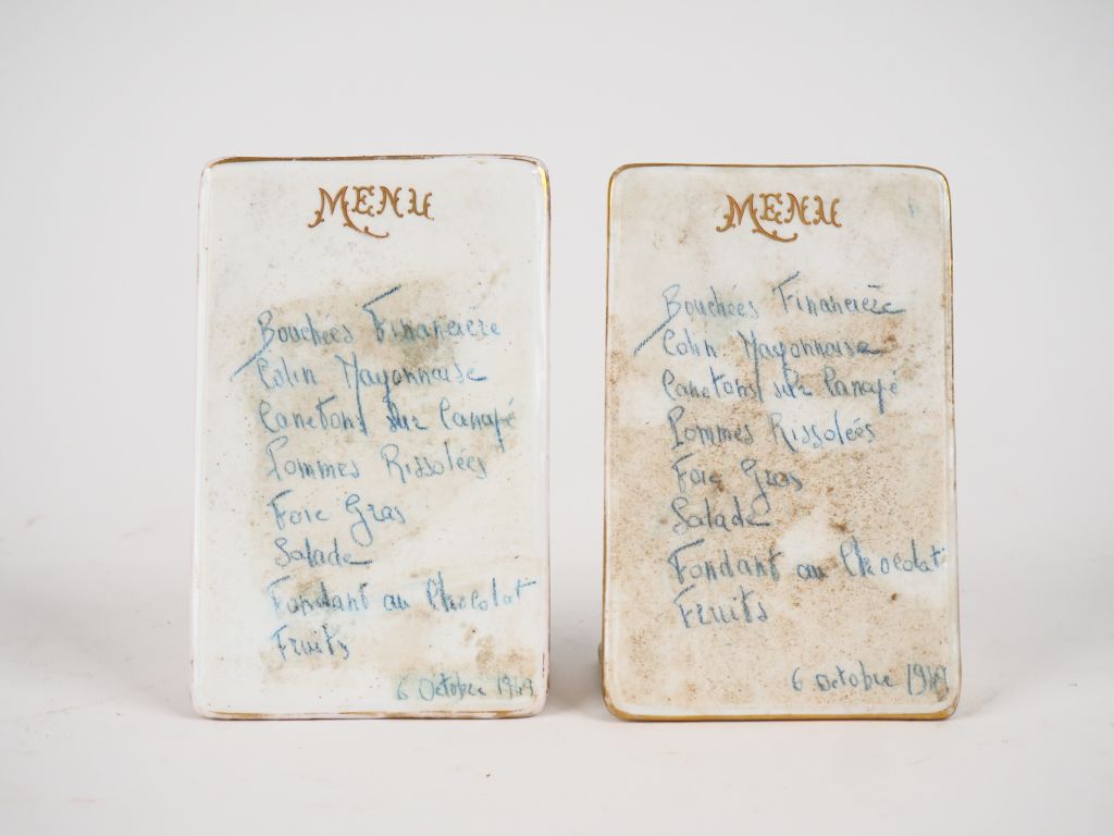 Lot de Paire de menus Napoléon III en porcelaine de Paris au prix de 40 à 50 € en vente aux enchères par l'hôtel des ventes Primardeco