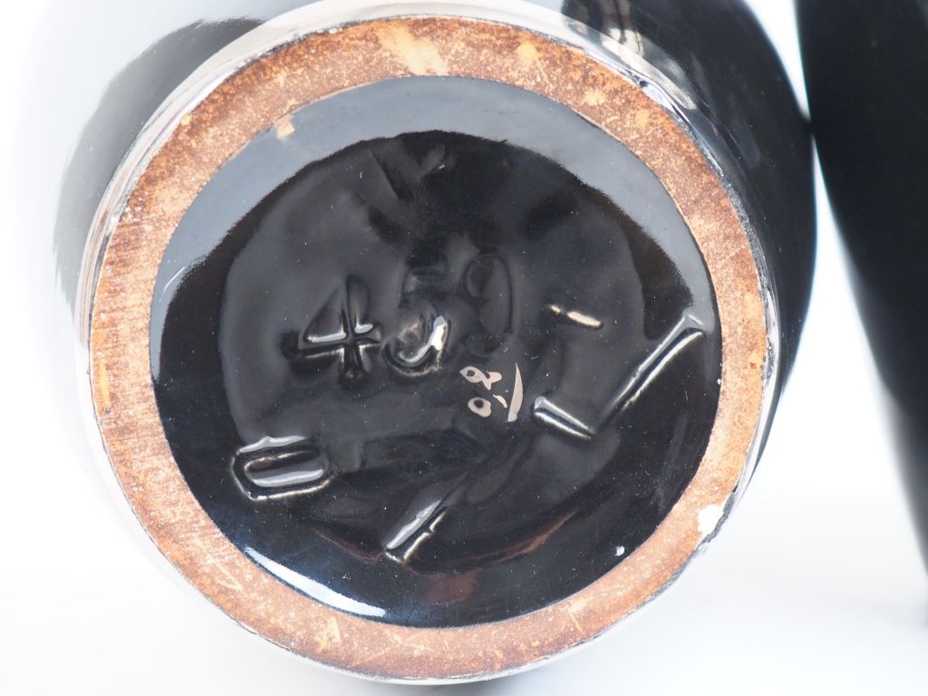 Paire de vases ovoides Art Déco en céramique noire et argenté, à décor de frise d'oves. H. 37 cm