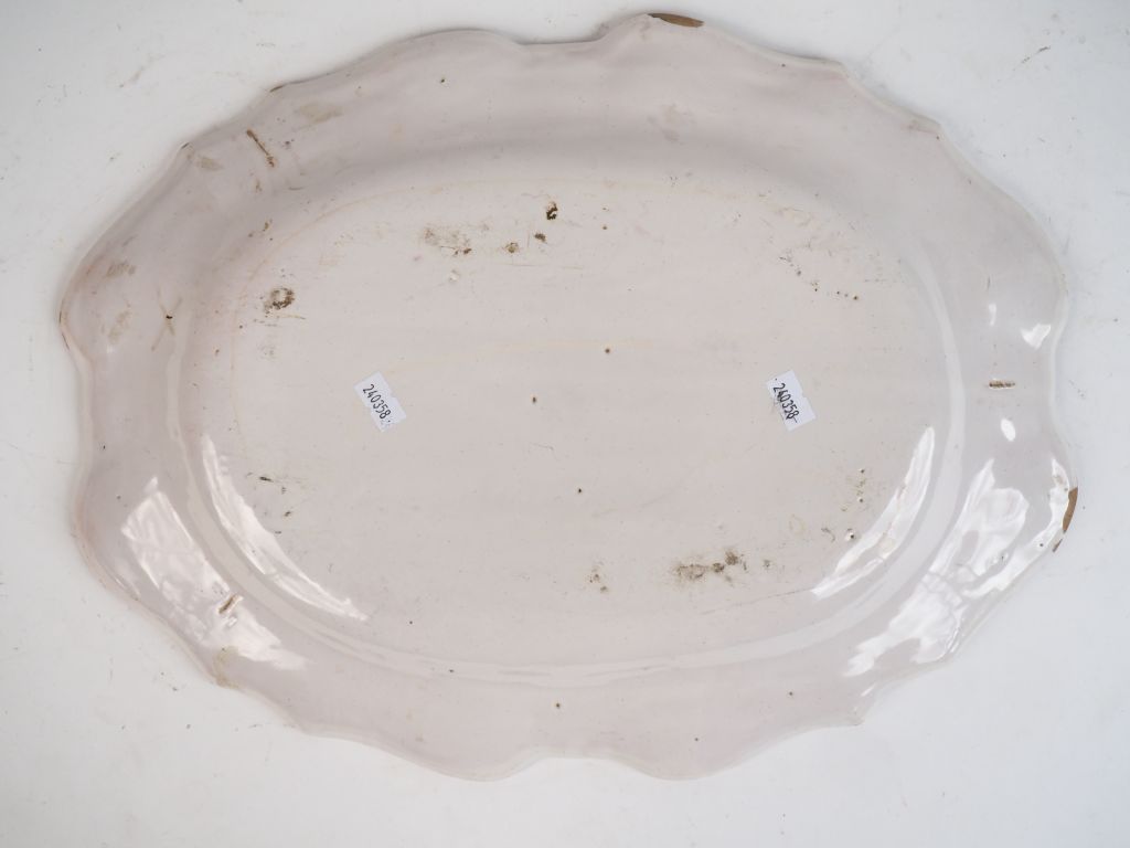 Plat XVIIIème en faience de Moustiers à décor de grotesques. Dim. 31,5 x 42 cm