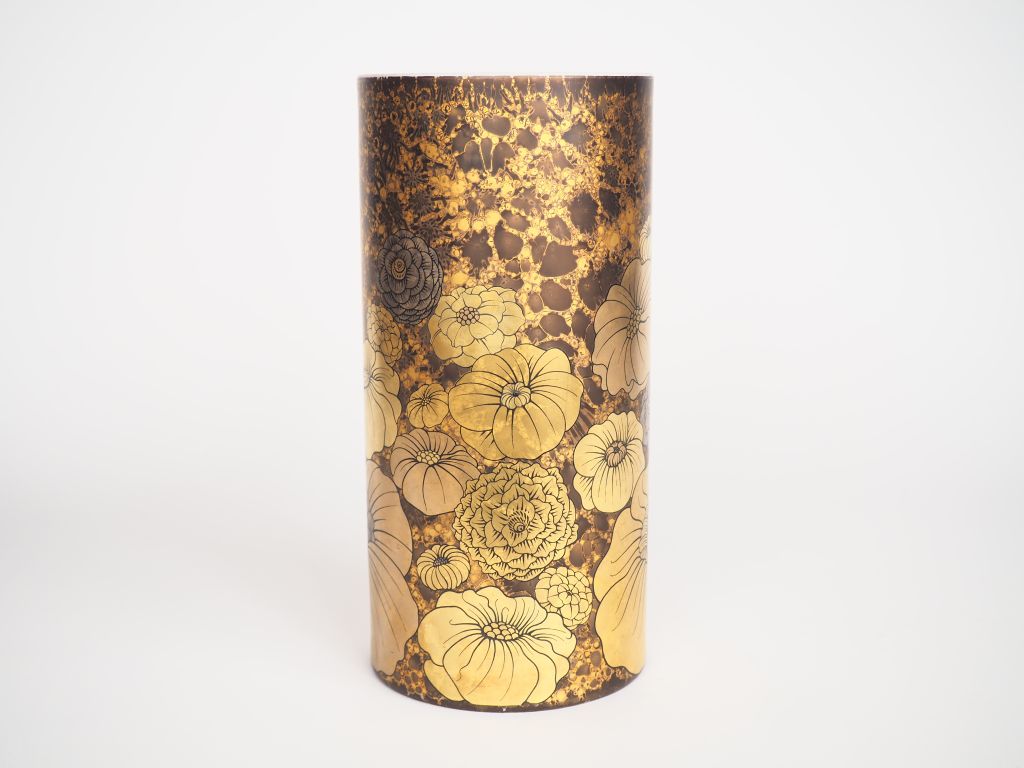 ROSENTHAL Studio Linie. Vase cylindrique en porcelaine à décor de fleurs dorées sur fond marbré. Signé. Dim. 25 x 12 cm.