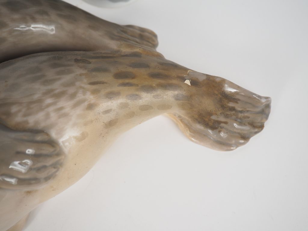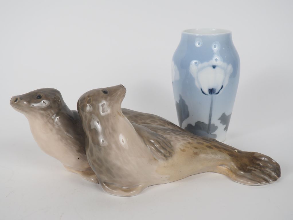 ROYAL COPENHAGUE. "les deux phoques" Groupe en porcelaine (restauré, égrenures) Dim. 10 x 25 cm ROYAL. COPENHAGUE Petit vase ovoide à décor de pavots Signé H. 13,5 cm