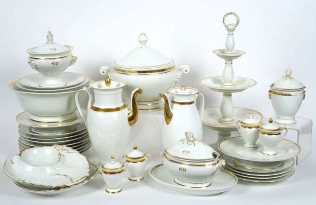 Service de table en porcelaine blanche et dorée début XIXème (quelques pièces dépareillées)