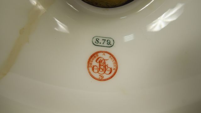 SEVRES. Grande coupe sur piedouche en porcelaine à décor de liserés, d'oiseaux dorés sur fond bleu de four. Signée et datée 1879. H. : 24 cm.