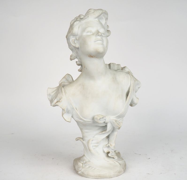 Lot de Sujet en biscuit vers 1900, "jeune fille au chignon". Signé. H. 46 cm. au prix de 80 à 120 € en vente aux enchères par l'hôtel des ventes Primardeco