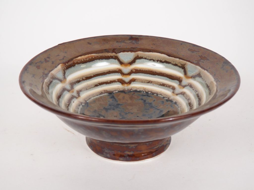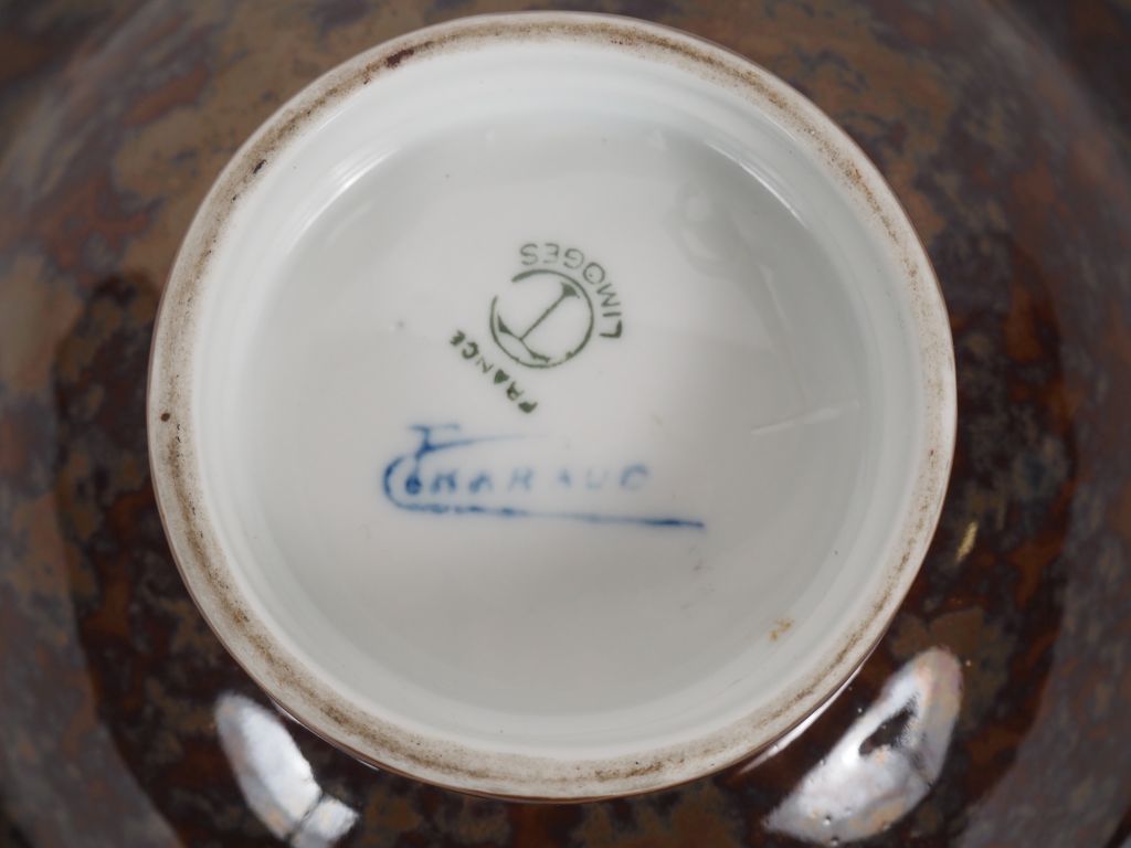 THARAUD. Coupe en porcelaine, décor marbré dans des tonalités brunes. Signée Dim. 8 cm (micro égrenure)