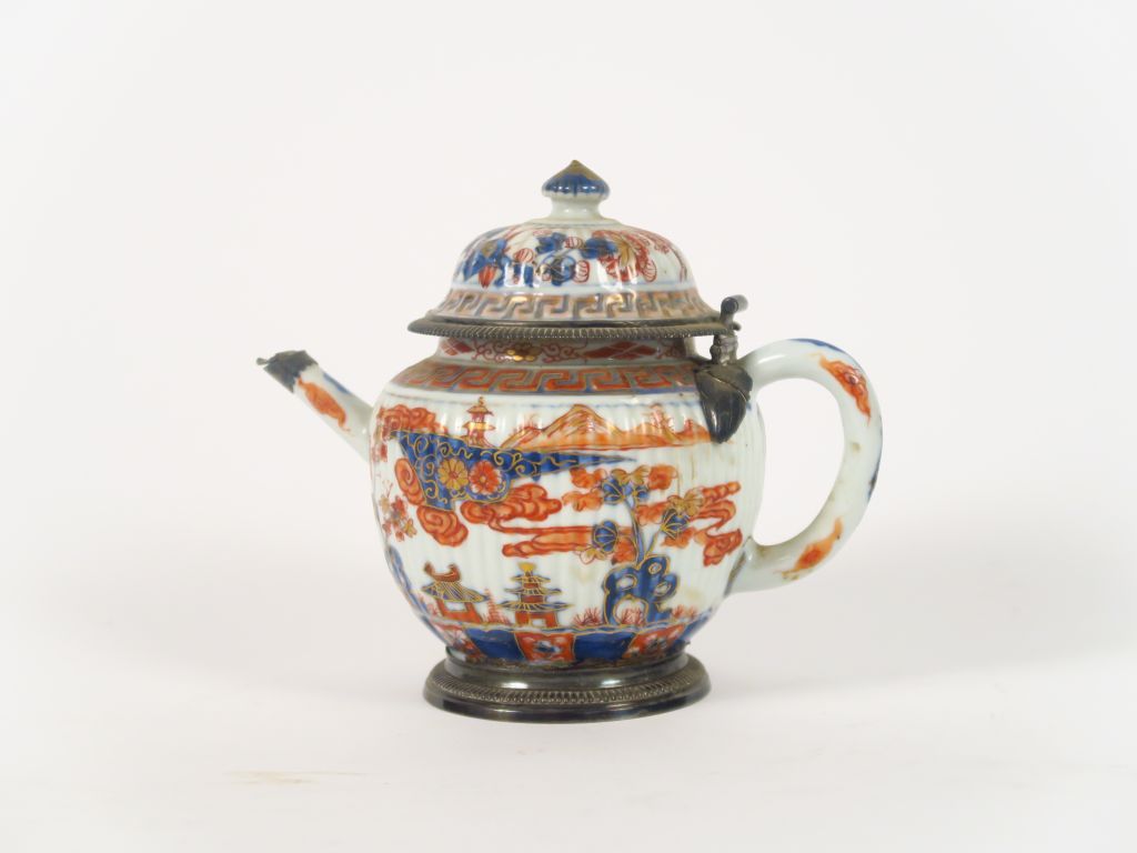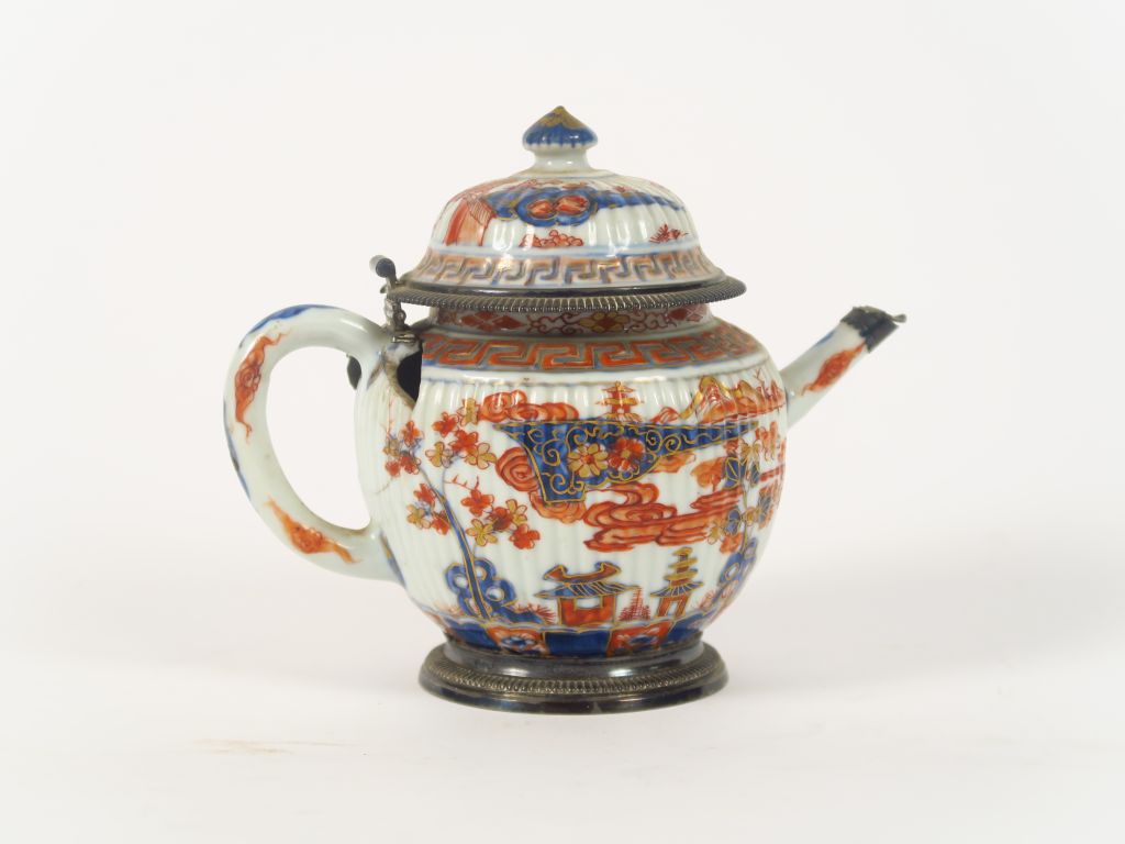 Lot de Théière et un pot couvert en porcelaine d’Imari, monture argent (mauva au prix de 80 à 100 € en vente aux enchères par l'hôtel des ventes Primardeco