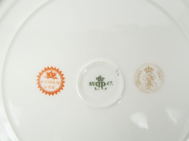 Lot de Trois assiettes en porcelaine polychrome de Sèvres. 1842. Modèle du Ch au prix de 100 à 200 € en vente aux enchères par l'hôtel des ventes Primardeco