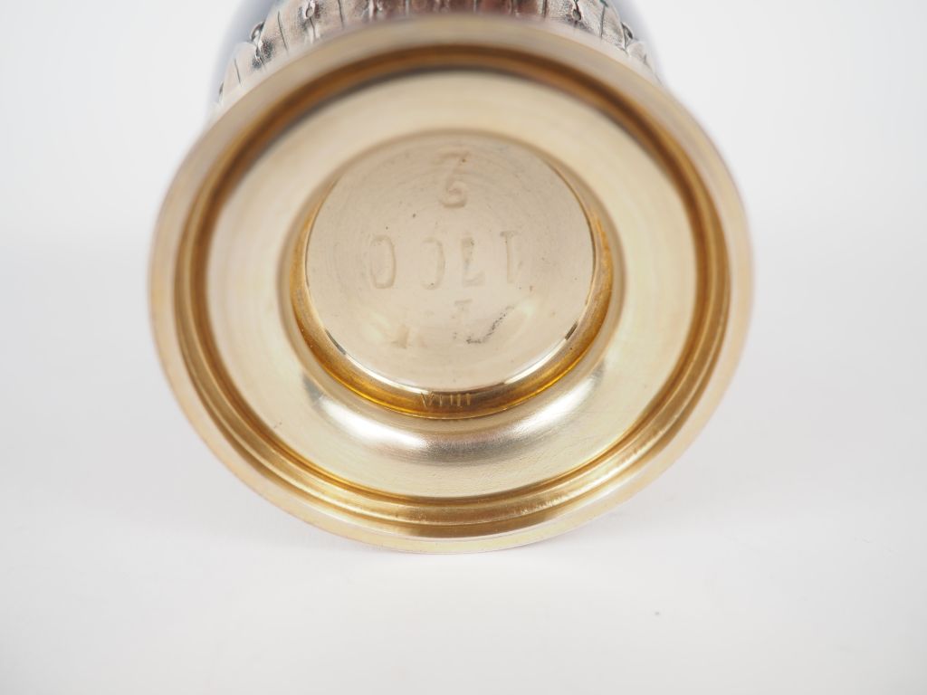 Vase en faïence fine émaillée bleue, monture en argent de style Louis XVI. H. 11 cm.