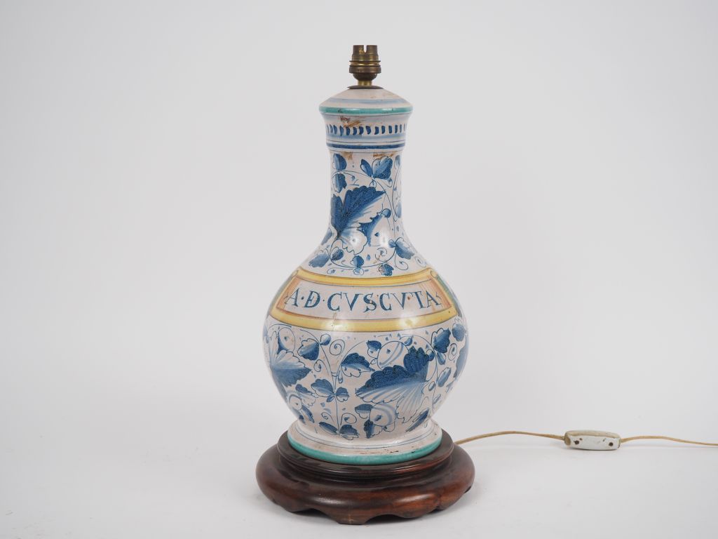 Lot de Vase en faïence italienne monté en lampe. H. 36 cm au prix de 50 à 80 € en vente aux enchères par l'hôtel des ventes Primardeco