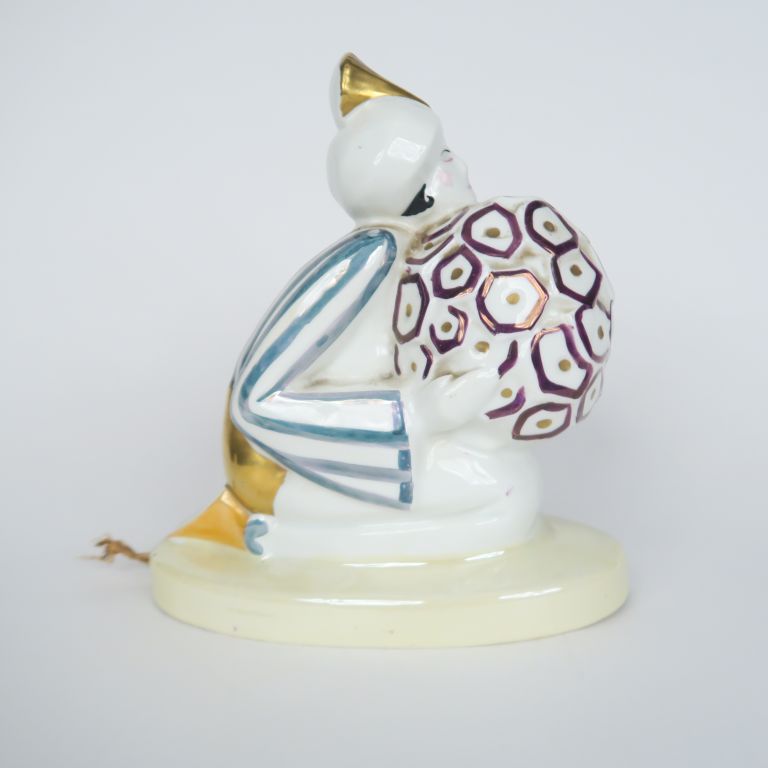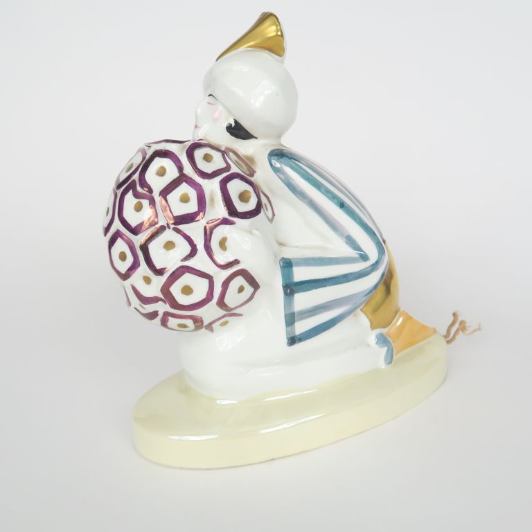 Veilleuse Art Déco en porcelaine polychrome de Limoges, figurant "une jeune garçonne au turban". Signée Bras H. 23 cm