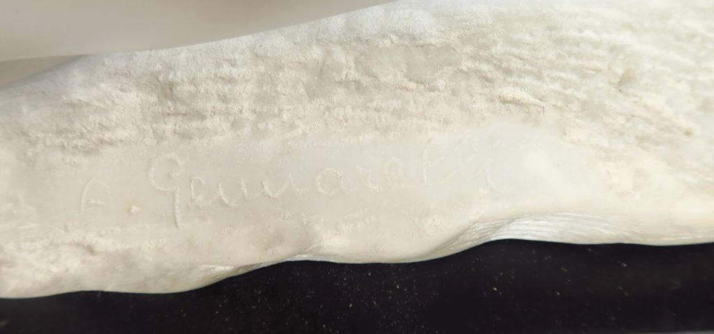 A. GENARELLI. "Femme nue allongée". Sculpture en marbre blanc, sur un socle en marbre noir. Dim avec socle : 80 x 18 x 19 cm