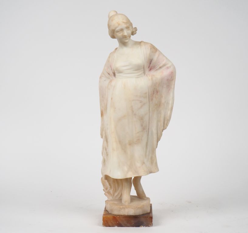 Lot de A. LUCHINI. "La belle italienne". Sculpture en albâtre. Signée. H. 4 au prix de 300 à 450 € en vente aux enchères par l'hôtel des ventes Primardeco