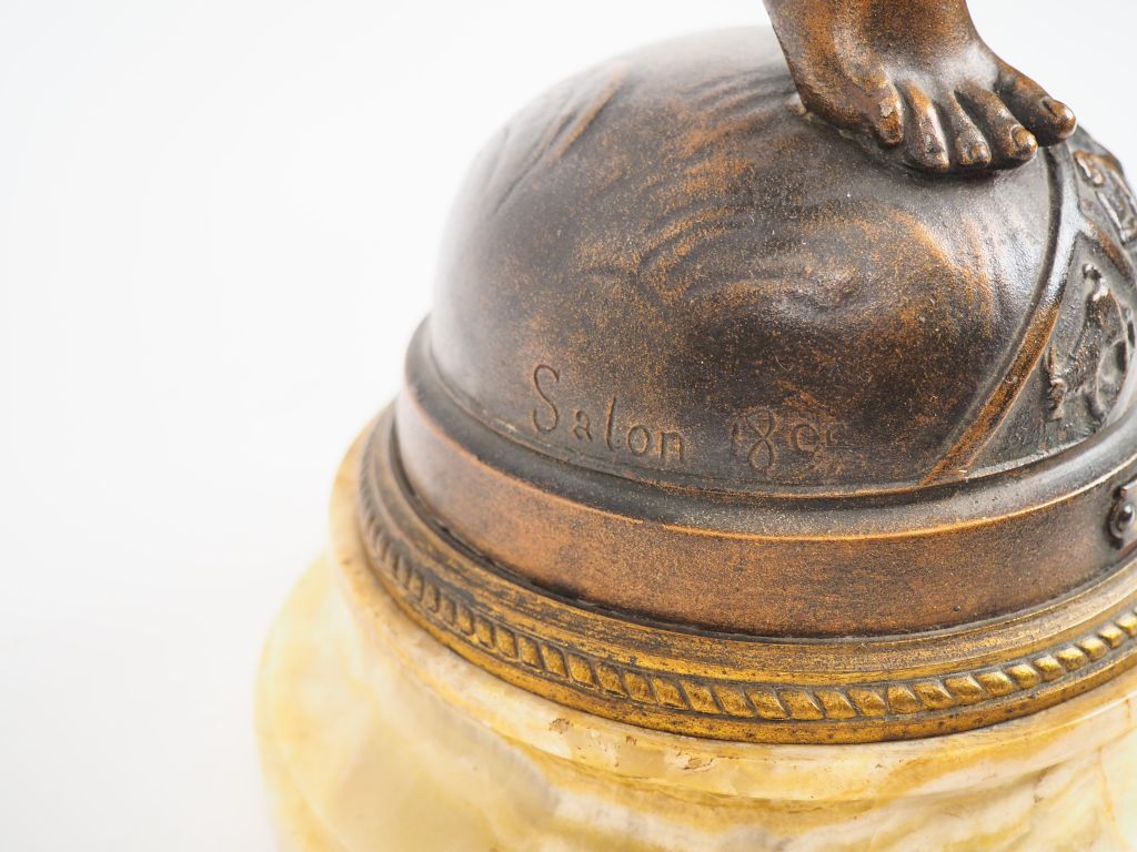 BAREAU. "Gloria" Grande sculpture en régule sur un socle en onyx. H. avec socle : 80 cm