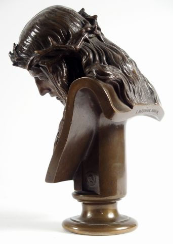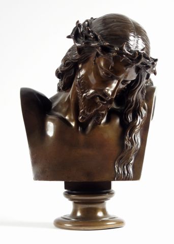 CLESINGER "Christ à la couronne d'épines". Sculpture en bronze à patine brune, signée, située à Rome, datée 1858. Barbedienne fondeur. H. : 26 cm
