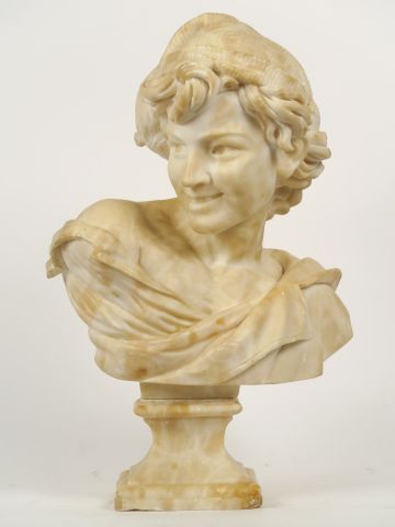 D'après Carpeaux, sculpture en albâtre fin XIXème "Le petit pêcheur napolitain" (petits accidents). H. 53 cm