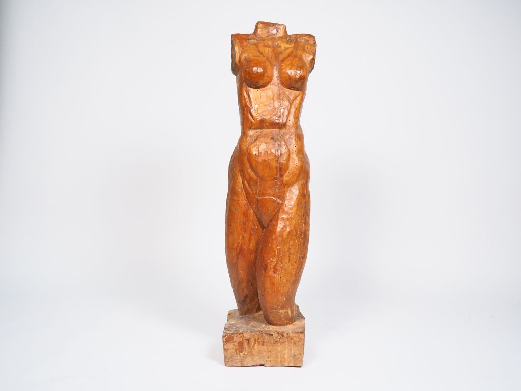 Lot de Ecole française XXème "Nu féminin" Sculpture en bois H. 102 cm au prix de 350 à 500 € en vente aux enchères par l'hôtel des ventes Primardeco
