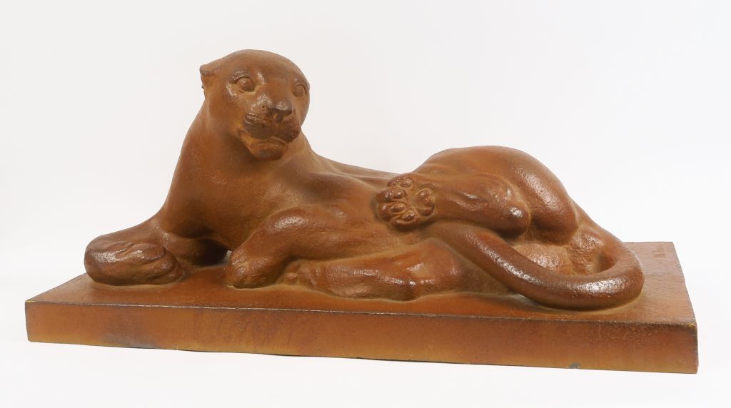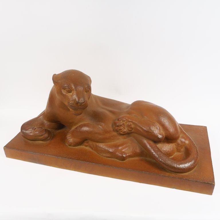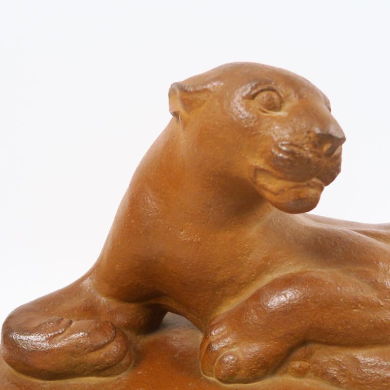 G. HILBERT "Panthère" Grande sculpture en grés. Signée. Datée 1956. Manufacture Nationale de Sèvres. 36,5 x 79 x 33,5 cm