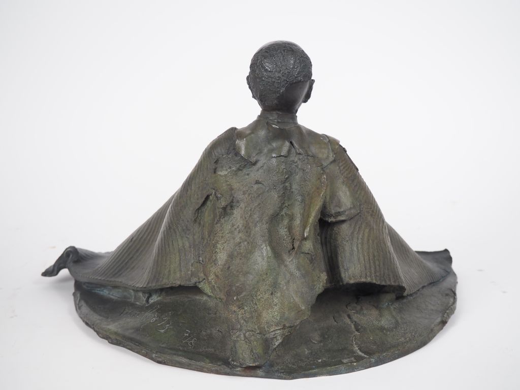 Georges JEANCLOS (1933-1997) « Moine en prière » Sculpture en bronze signée et datée 73 Numérotée 7/8, fonte Godart (cachet du fondeur) Dim. 27 x 48 x 36 cm. Provenance : Collection particulière Madame DC (Montpellier) Experts : Frédérick et Pauline Chanoit - 01 47 70 22 33