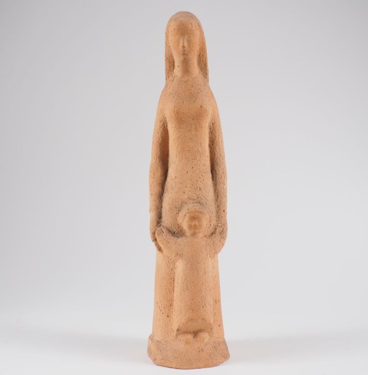 Henri Paul REY. "Vierge à l'enfant" Sculpture en terre cuite. H. 37 ...