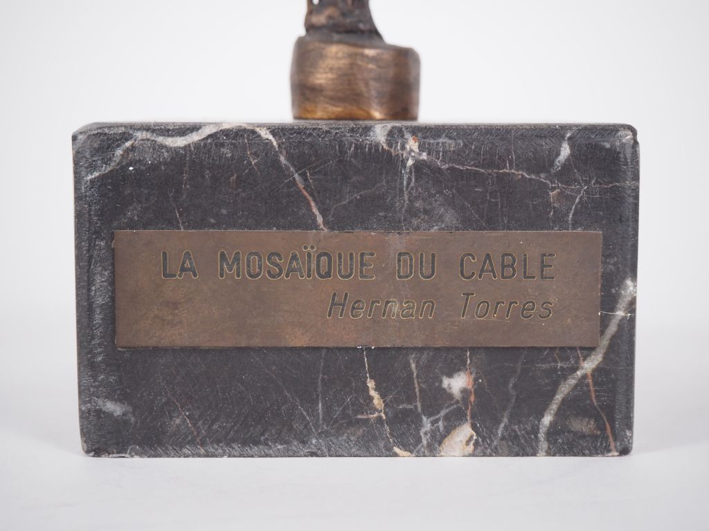 Hernan TORRES. "La mosaïque du cable". Sculpture en bronze signée et titrée dans un cartouche, sur un socle en marbre. H. 42,5 cm.,