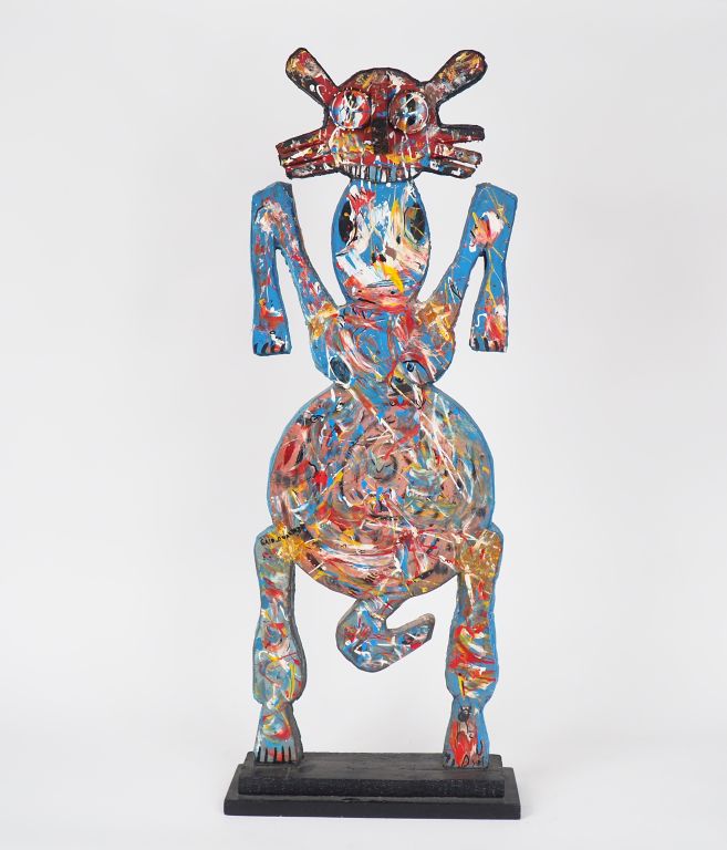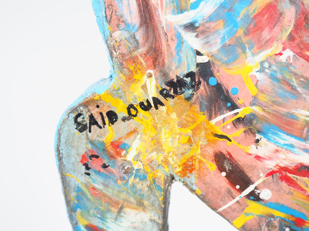 Lot de Saïd OUARZAZ. "Totem". Sculpture en bois polychrome, signée. Dim. 94 x au prix de 500 à 600 € en vente aux enchères par l'hôtel des ventes Primardeco