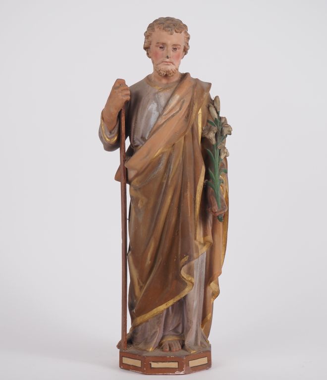 Lot de Sculpture en plâtre polychrome "Saint Joseph" H. 45 cm au prix de 30 à 40 € en vente aux enchères par l'hôtel des ventes Primardeco