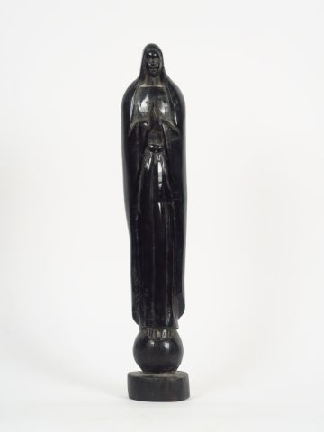 Lot de Sculpture moderne en ébène "Vierge Noire". H. 53 cm au prix de 60 à 80 € en vente aux enchères par l'hôtel des ventes Primardeco
