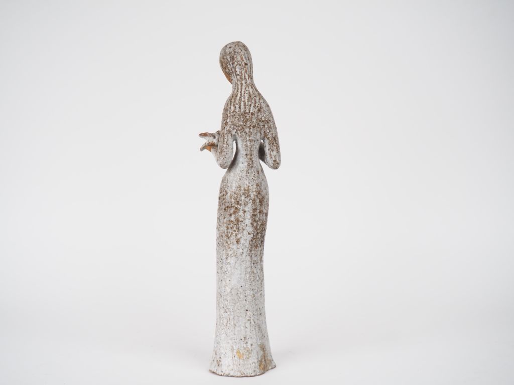 Sujet XXème en grès "jeune fille aux deux colombes". H. 37,5 cm