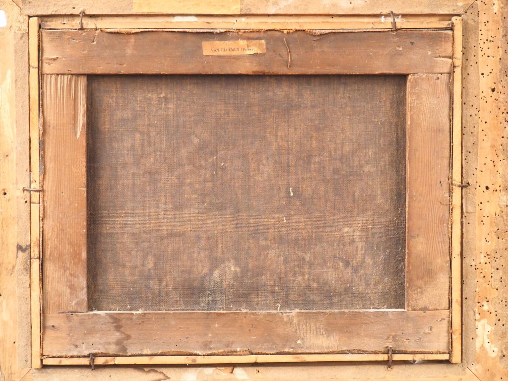 Attribué à Pieter Van BLOEMEN (1657 - 1720) "Troupeau à l'abreuvoir" Toile d'origine Hauteur : 32,5 cm Largeur : 40,5 cm Porte un monogramme en bas à gauche en rouge VB