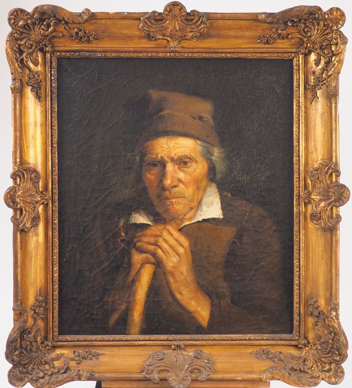 CAZABON. "Homme s'appuyant sur son baton". Huile sur toile, signée en bas à gauche. Dim. 53 x 46 cm