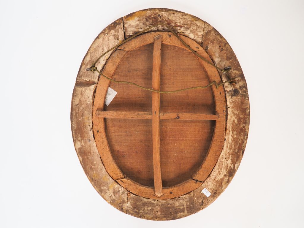 Charles LE BRUN (d'après). "Vierge de douleur". Huile sur toile. Dim. 41 x 32 cm. (Restaurations, sauts de peinture). Dans un cadre en bois doré XVIIIème