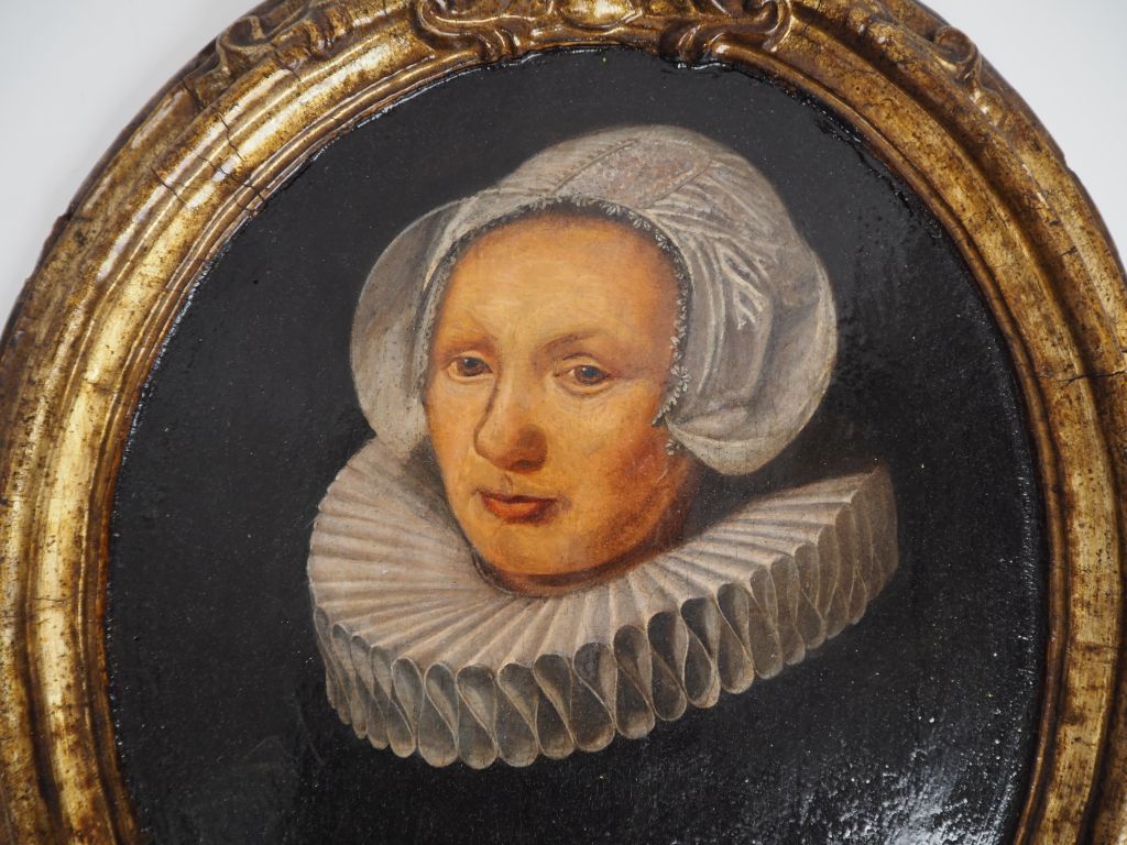 Dans le goût de l'école de Harlem XVIIème. "Portrait d'homme, portrait de dame". Paire de panneaux à cadre inclus. Hauteur : 37 cm. Largeur : 31 cm. (Restaurations anciennes) Expert : Cabinet Turquin - Stéphane Pinta.