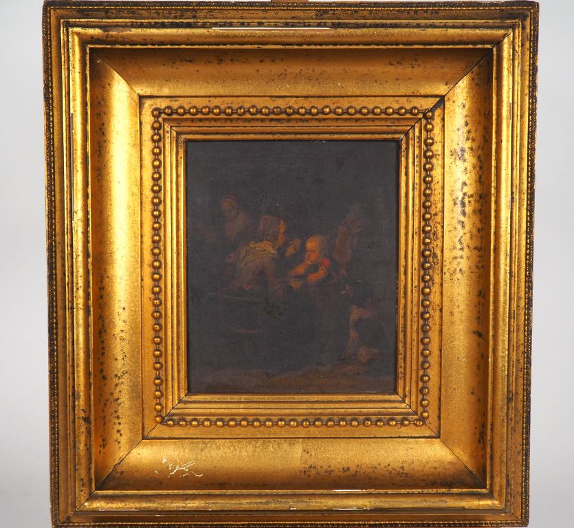 Lot de Ecole du Nord début XIXème. "Mère nourissant son enfant". Huile sur pa au prix de 200 à 300 € en vente aux enchères par l'hôtel des ventes Primardeco