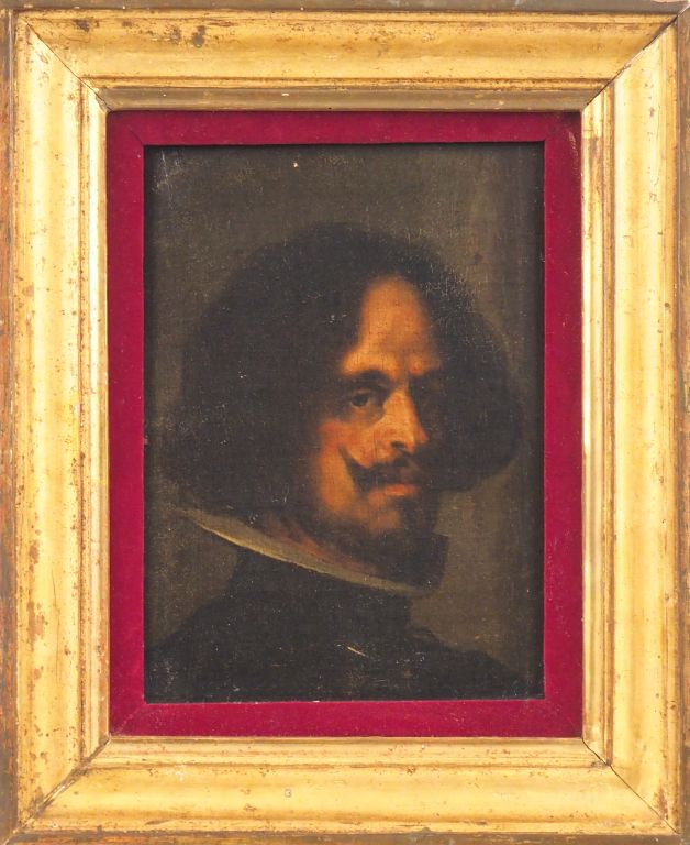 Ecole espagnole XVIIème d'après VELASQUEZ. "Portrait d'homme". Huile sur toile. Dim. 30,5 x 23 cm.