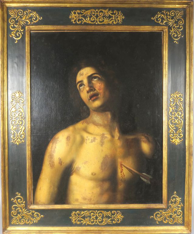 Ecole flamande XVIIème "Saint Sébastien" Huile sur toile. 73,5 x 56 cm (restaurations, réentoilée)